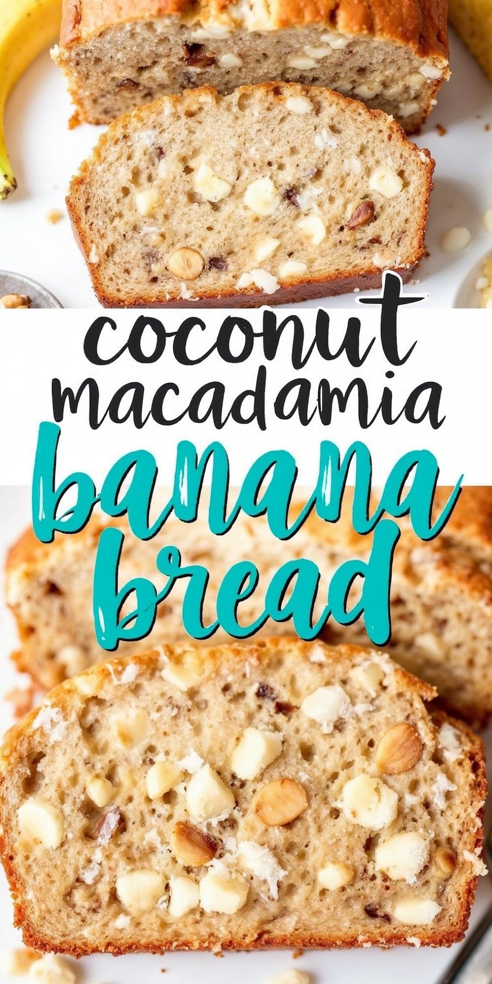 This coconut macadamia banana bread features overripe bananas, shredded coconut, and crunchy macadamia nuts for a moist, flavorful loaf. It's perfect for breakfast, snacks, or dessert with a touch of optional white chocolate sweetness.