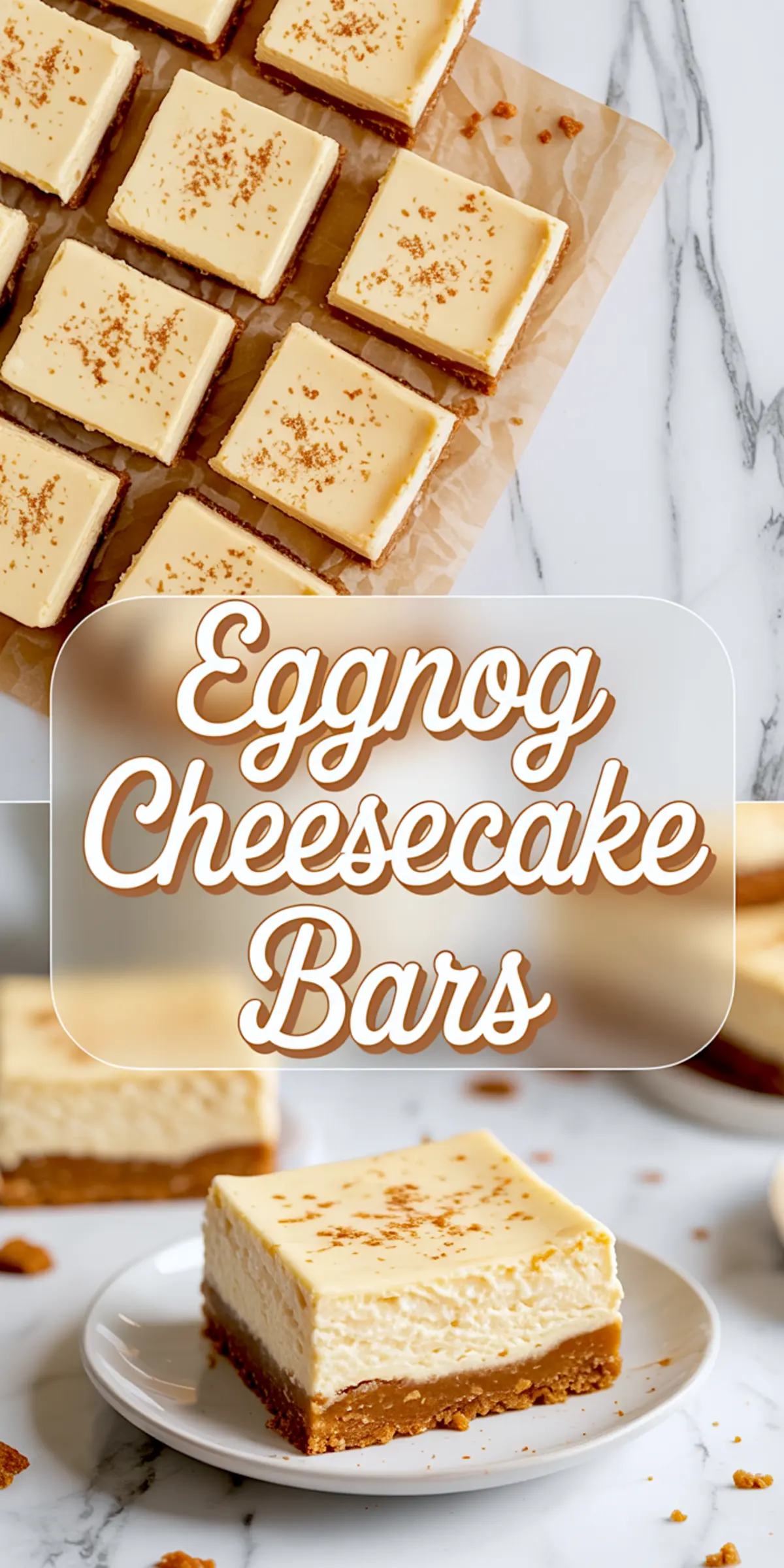 These Eggnog Cheesecake Bars are the ultimate holiday dessert—rich, creamy, and full of festive flavor. Made with a gingersnap crust and topped with smooth eggnog cheesecake filling, these cheesecake squares are perfect for Christmas parties, potlucks, or cozy nights in. If you’re searching for eggnog dessert ideas or easy cheesecake bar recipes, this holiday twist on a classic treat is a must-try. No water bath required, and the flavor of creamy eggnog shines in every bite. Whether you call them eggnog cheesecake squares or just holiday perfection, they’re a delicious way to celebrate the season. Save this eggnog cheesecake recipe to your festive dessert board now!