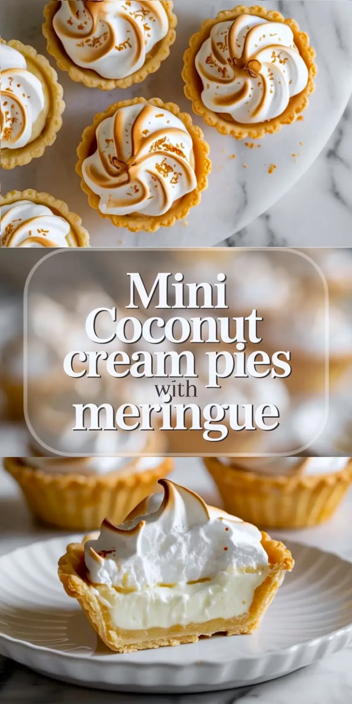 Save these mini coconut cream pies with toasted meringue for an individual coconut cream pie dessert that feels polished, classic, and easy to serve. Each pie gives you a buttery shell, smooth coconut cream filling, and a soft toasted meringue topping that makes the dessert feel lighter and more finished than a plain whipped topping version. They work beautifully for spring gatherings, Easter dessert tables, showers, brunches, and party trays because they are already portioned and easy for guests to pick up. If you want mini coconut cream pies that keep the creamy coconut flavor and bakery style look of a full coconut cream pie while fitting a dessert table more neatly, this is a strong recipe to keep nearby.