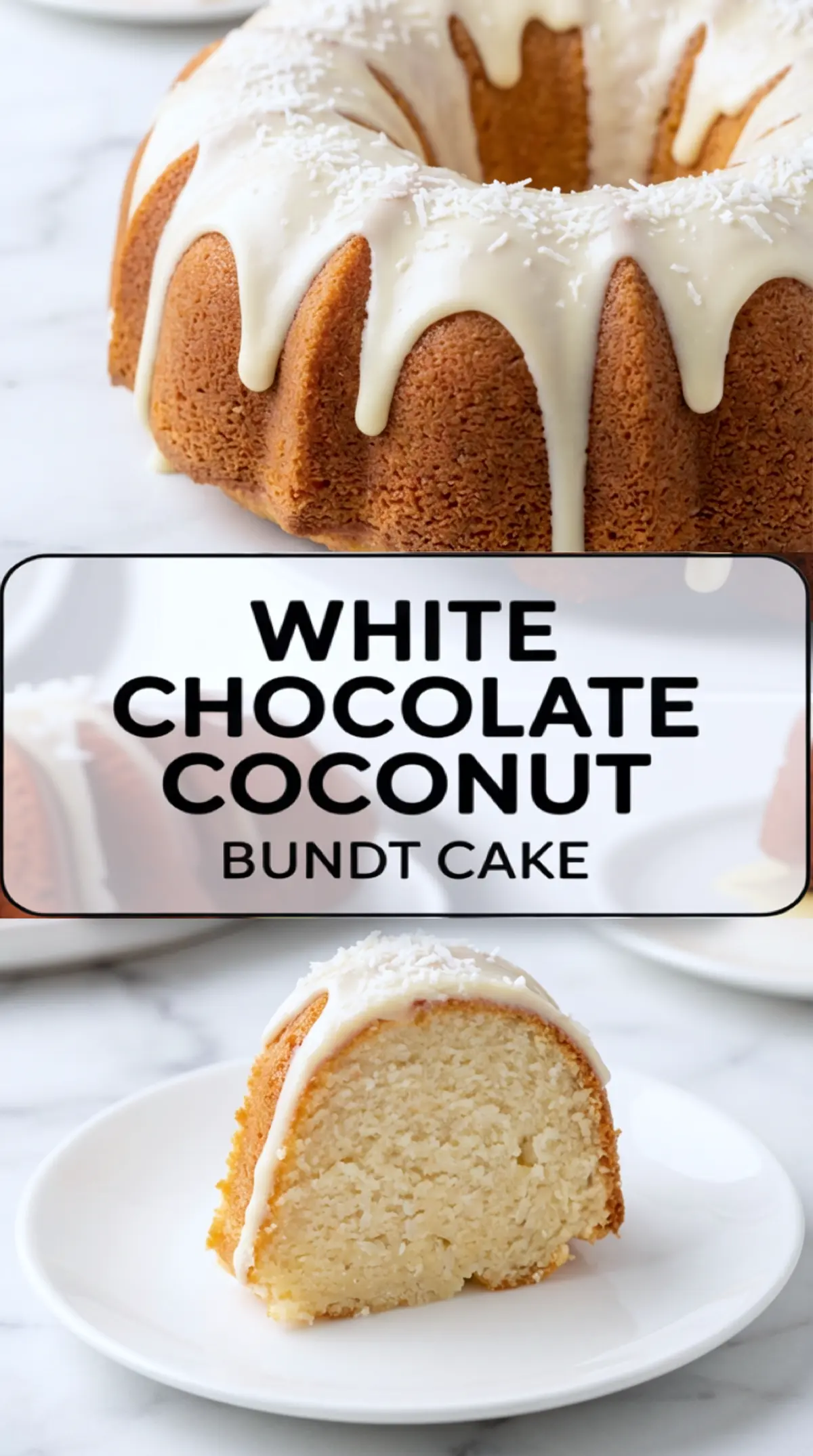 This White Chocolate Coconut Bundt Cake blends sweetened coconut and melted white chocolate into a rich, moist crumb that bakes beautifully in a classic Bundt shape. It’s based on a coconut cake recipe with a nod to the famous Tom Cruise cake, but made with simple pantry ingredients and no need for delivery. Readers looking for coconut desserts, white chocolate cake ideas, or bundt cakes recipes get a dense interior, steady coconut flavor, and a white chocolate glaze that sets cleanly.