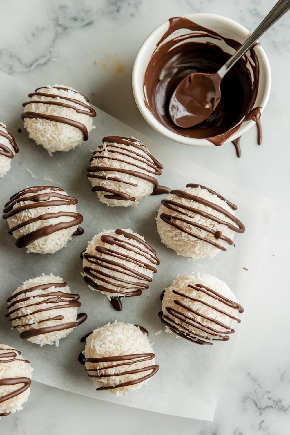 - Drizzle with Chocolate: Melt additional chocolate with a bit of coconut oil until smooth. Drizzle over the top of each coconut ball, creating a beautiful finish. The drizzle not only looks pretty but adds another layer of chocolate flavor.