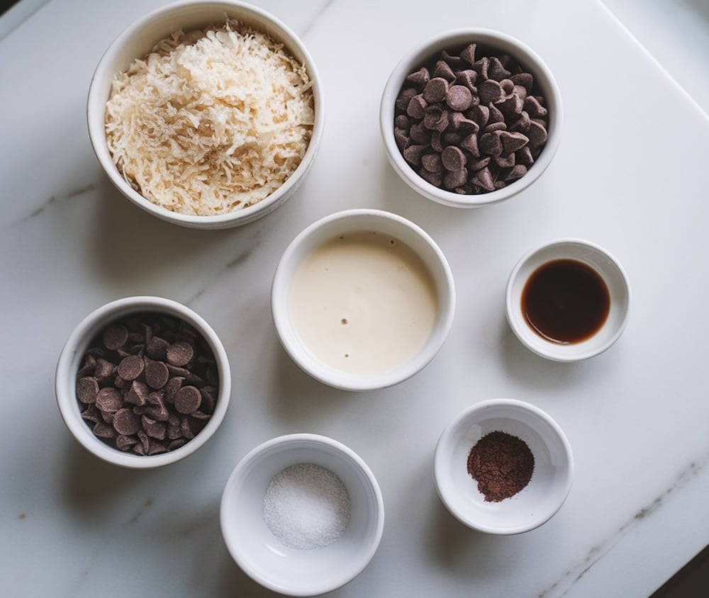 Dark Chocolate Chips (for the Filling) – dark chocolate really vibes with the coconut. When it melts, it turns into this awesome hidden center in each ball, giving you a tasty little surprise.
