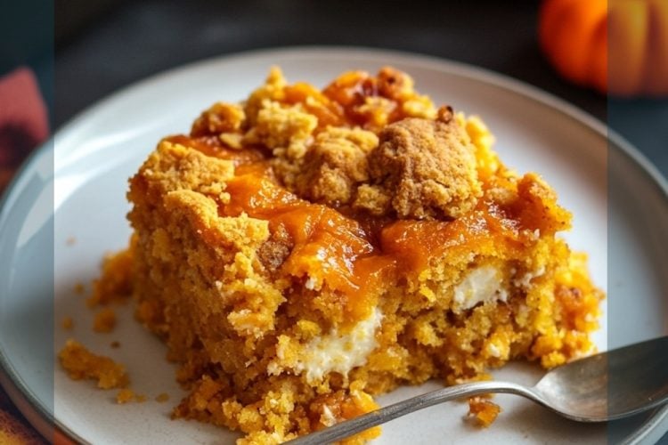 Imagine layers of velvety pumpkin custard, kissed with cinnamon and nutmeg, nestled beneath a blanket of buttery, golden crumbs. It’s the kind of dessert that makes you close your eyes and sigh contentedly with each bite.