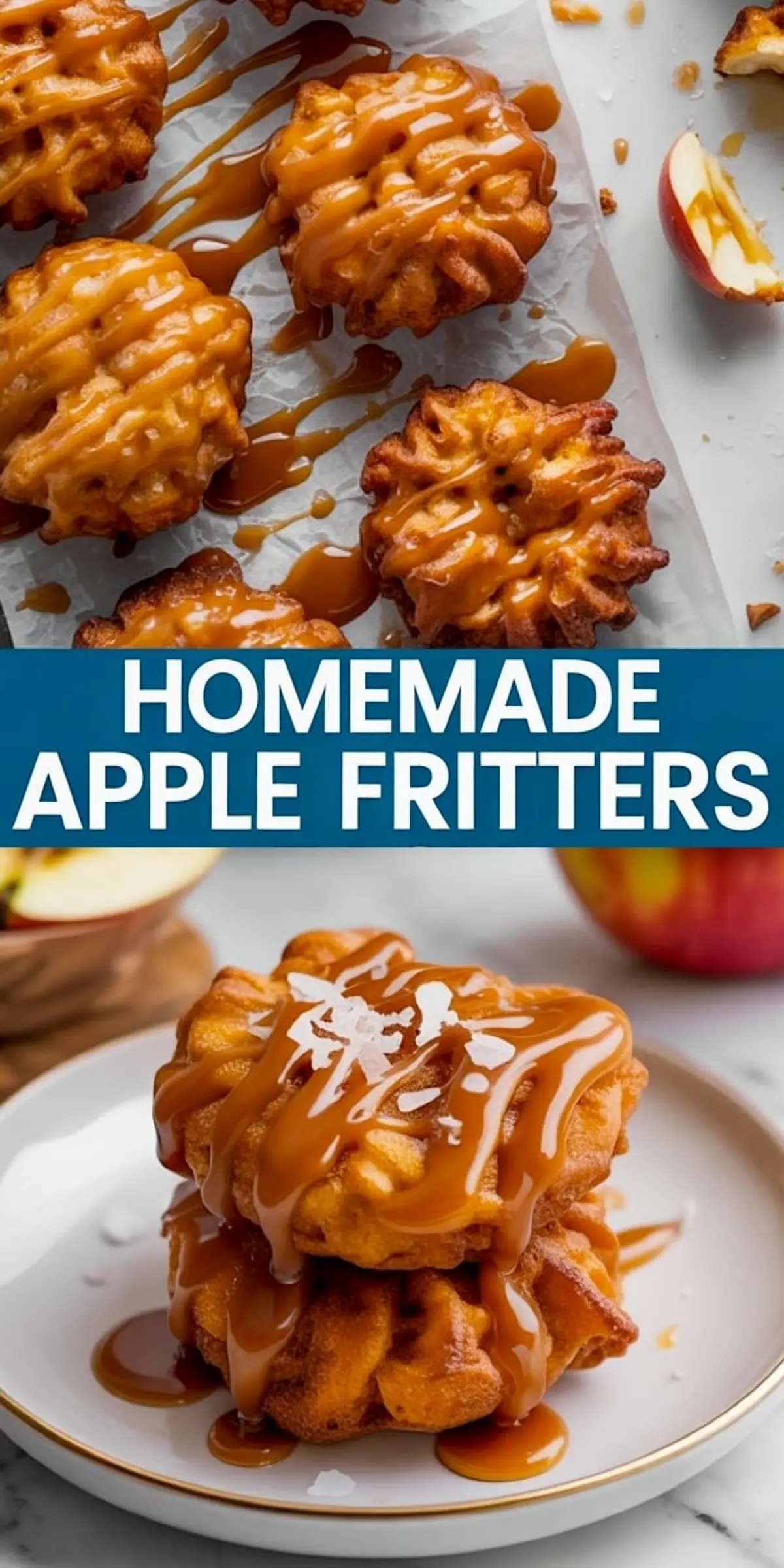 - ASSEMBLE AND SERVE: Place the fritters on a wire cooling rack set over a sheet of parchment or wax paper. Drizzle the warm caramel sauce generously over each fritter. Optional: sprinkle lightly with flaky sea salt for extra flavor contrast. Serve warm.