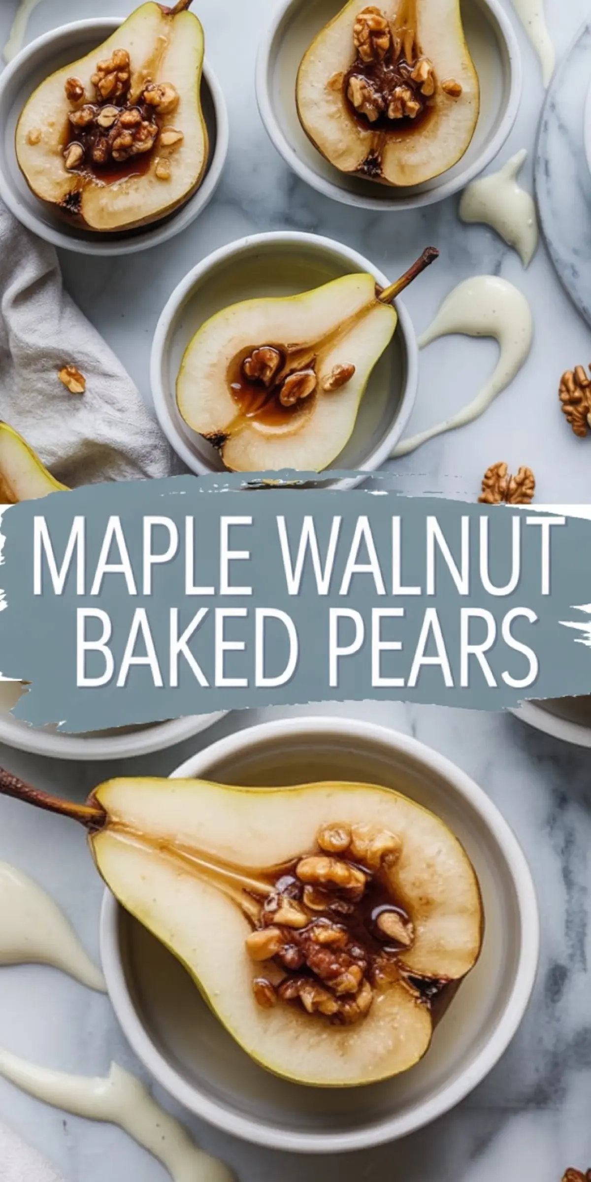 Use pears that are ripe but still firm so they hold their shape during baking. If substituting the walnuts, pecans also work well. The drizzle is optional but adds a creamy contrast to the warm fruit.