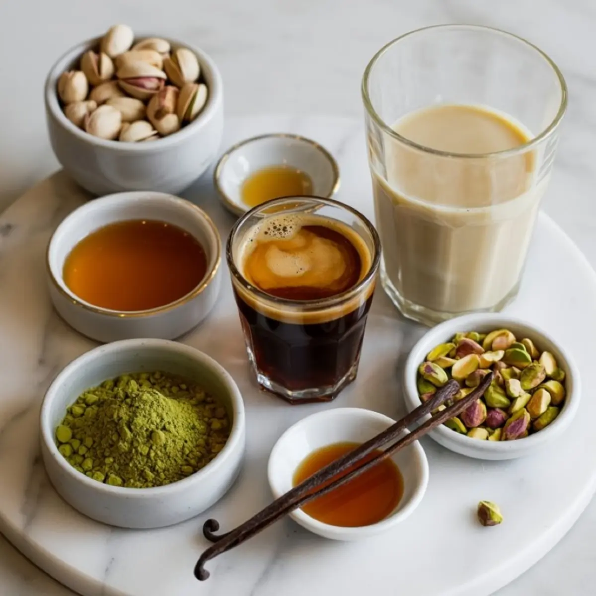 I’ve used this base to create everything from chilled pistachio milk for summer to a green tea latte recipe for cooler evenings. Here, it pairs with espresso or strong coffee to give structure and depth without overpowering the nutty notes.