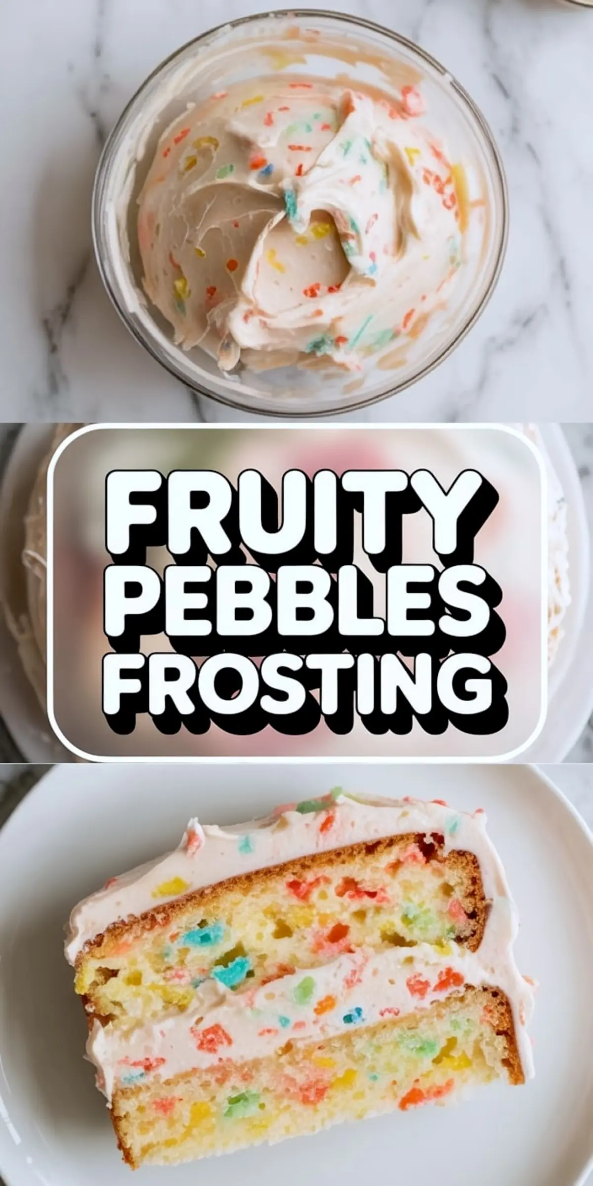 Fruity pebbles cereal gives the frosting its signature flavor and color. Small flakes soften slightly in buttercream yet keep tiny pops of color. Those specks make the frosting instantly recognizable.