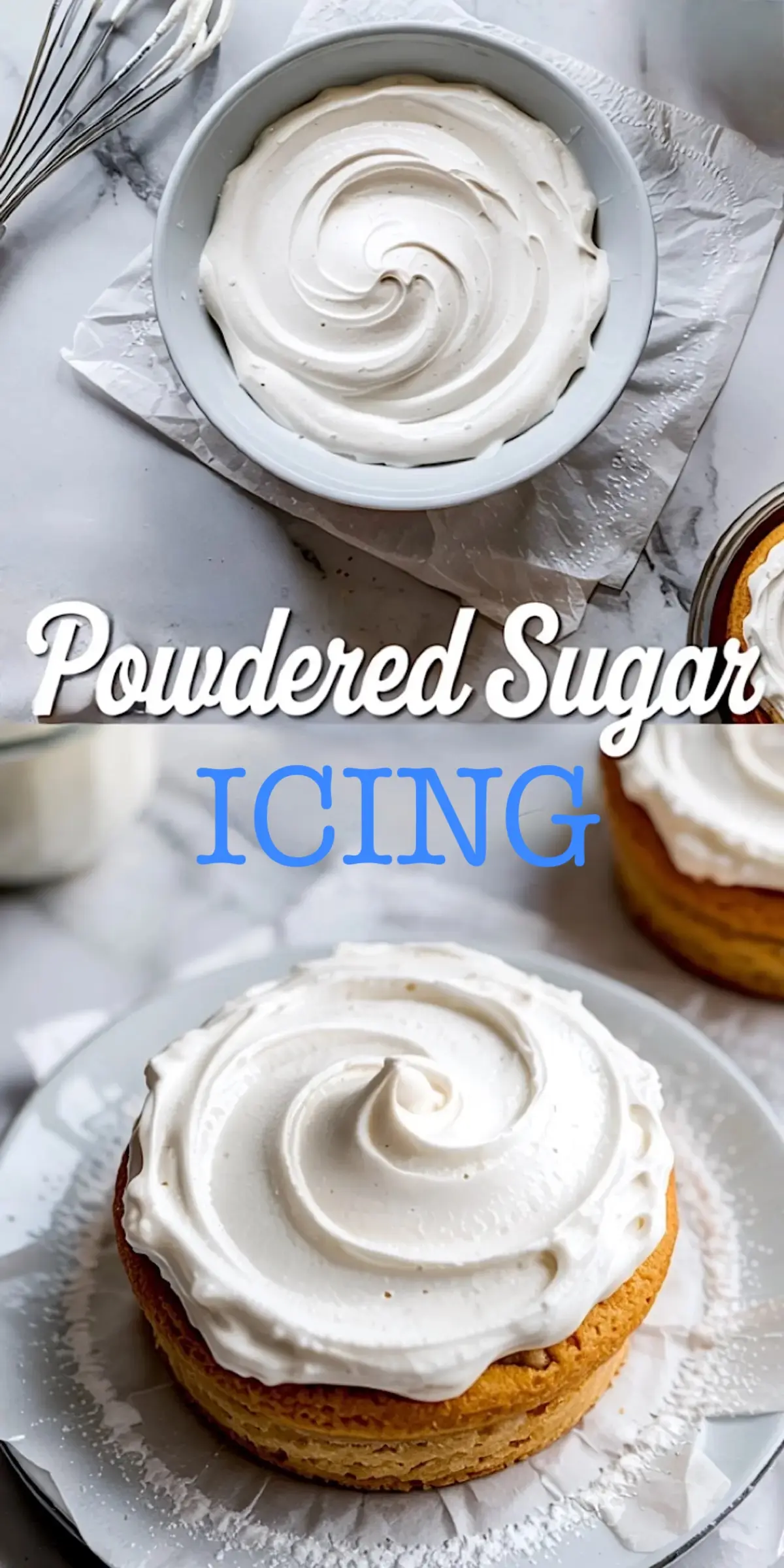 This powdered sugar icing is quick to mix, smooth in texture, and perfect for cookies, cakes, and pastries. Made with just a few ingredients, this easy icing recipe delivers a sweet glaze or drizzle in minutes. Use it as a cookie frosting recipe for decorating sugar cookies or as a simple powdered sugar glaze for bundt cakes and sweet breads. Ideal for last-minute baking, this versatile powdered sugar frosting works great for layering or drizzling. Save this go-to powdered sugar icing recipe for your next dessert project or holiday baking session.