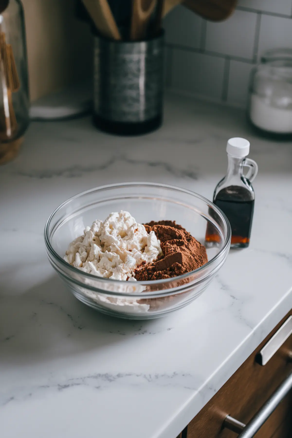 Blending everything until silky creates the essential base. I combine cottage cheese, cocoa powder, honey, vanilla, and salt in my blender. A thorough blend ensures no lumps remain, so I check the texture after about a minute.