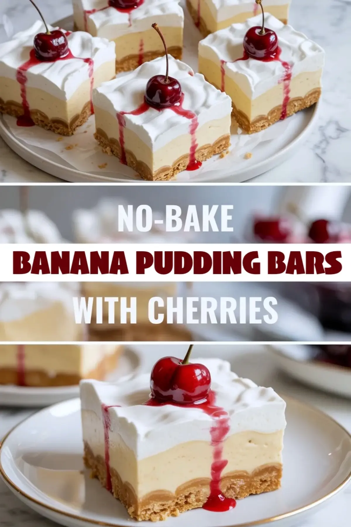 No-Bake Banana Pudding Bars with Cherries