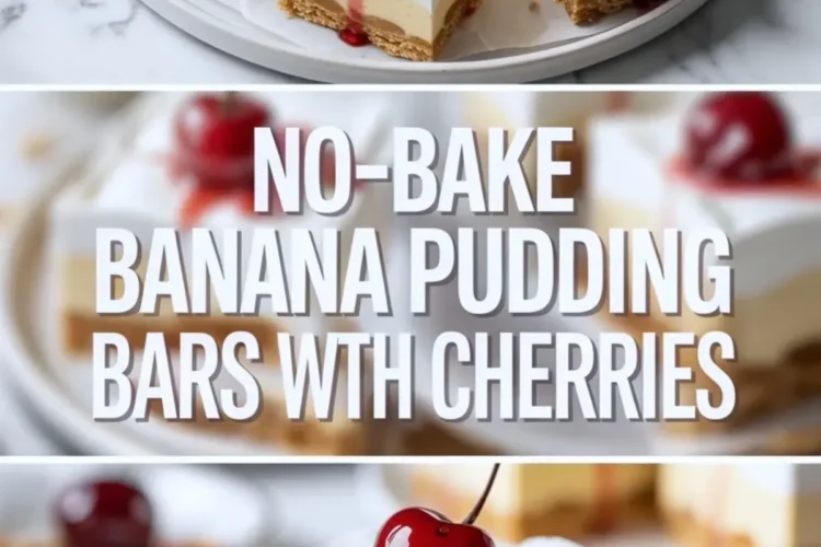 Save these no-bake banana pudding bars when you want a creamy chilled dessert that feels nostalgic, easy to slice, and good for sharing. They layer a vanilla wafer crust with smooth banana pudding filling, a light whipped topping, and bright cherries for a dessert that lands between banana pudding dessert bars, banana cream pie bars, and an easy no bake banana pudding pan dessert. The texture stays cool and creamy, while the vanilla wafer base gives the bars more structure than a loose bowl-style pudding. If you want a banana pudding bars recipe that looks cheerful on a dessert tray and holds up well in the fridge, this is a strong one to keep for potlucks, cookouts, and make ahead dessert tables.