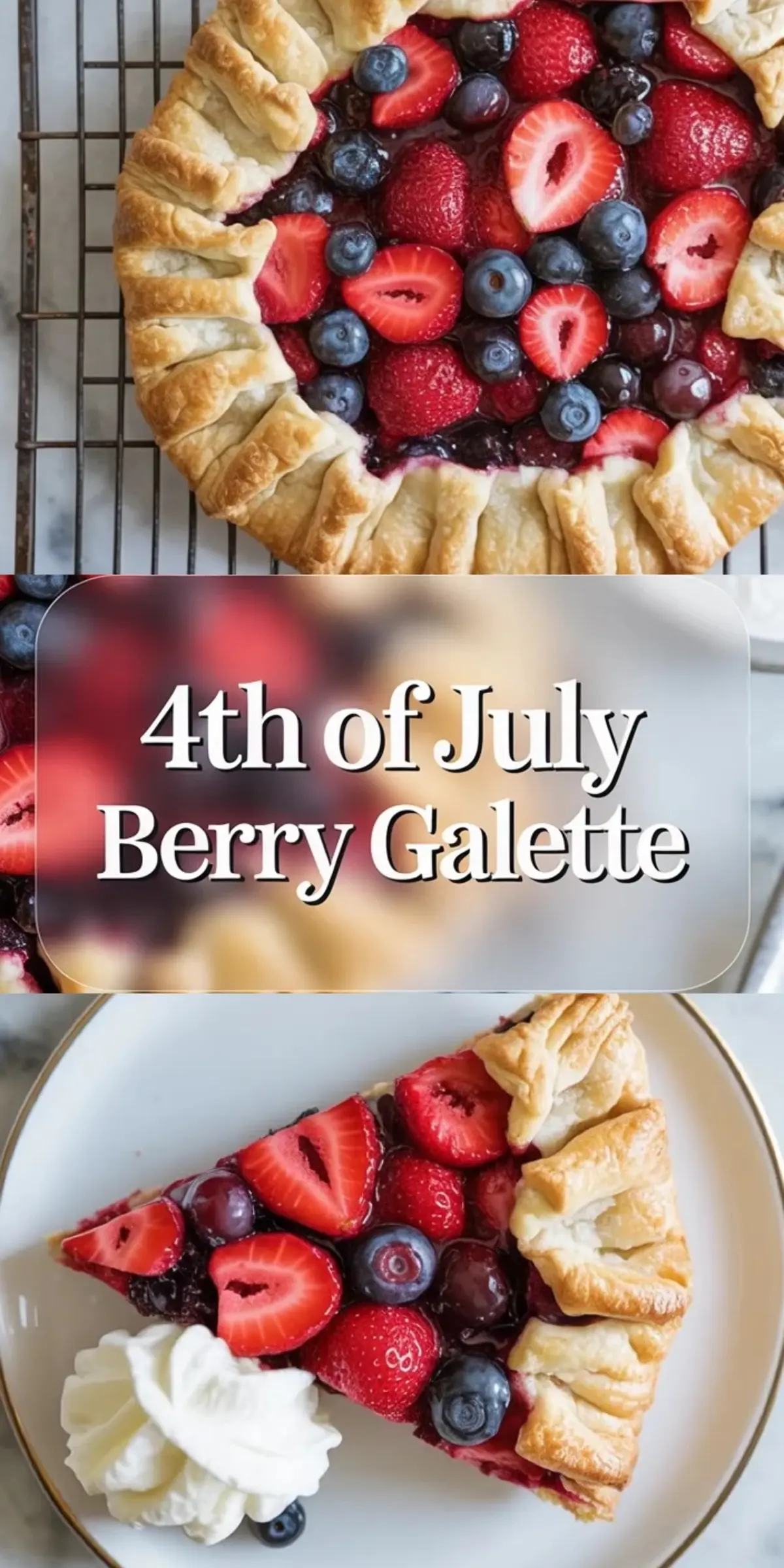 Save this 4th of July berry galette recipe for a patriotic dessert that feels festive without the pressure of making a perfect double crust pie. A flaky folded pastry crust wraps around a juicy mix of strawberries, blueberries, and cherries, so the center stays bright, glossy, and full of summer fruit flavor while the edges bake golden and crisp. It is the kind of rustic berry galette that works beautifully for the 4th of July, Memorial Day, cookouts, and warm weather gatherings because it looks special, slices easily, and can be served warm or at room temperature with whipped cream or vanilla ice cream. If you want an easy summer fruit dessert that still looks special, this one fits nicely.