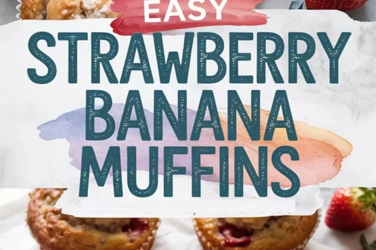 These strawberry banana muffins are soft, moist, and packed with real fruit flavor. The recipe uses ripe bananas and fresh strawberries to create a tender, flavorful muffin perfect for breakfast or snacking. No mixer is required, and everything comes together easily in one bowl.