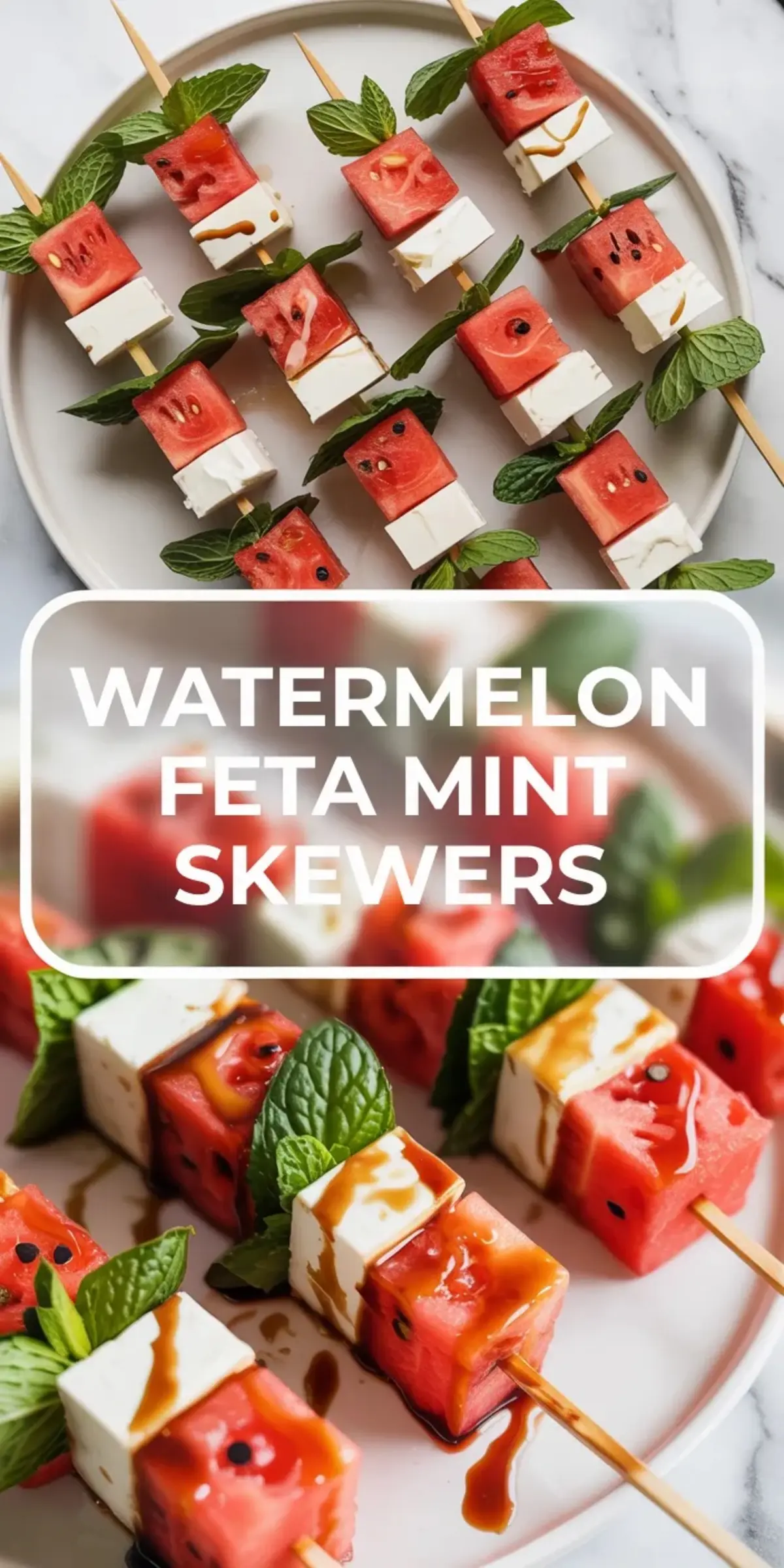 SERVE: Serve the skewers immediately after assembling to maintain the fresh texture of the watermelon and the bright flavor of the mint.