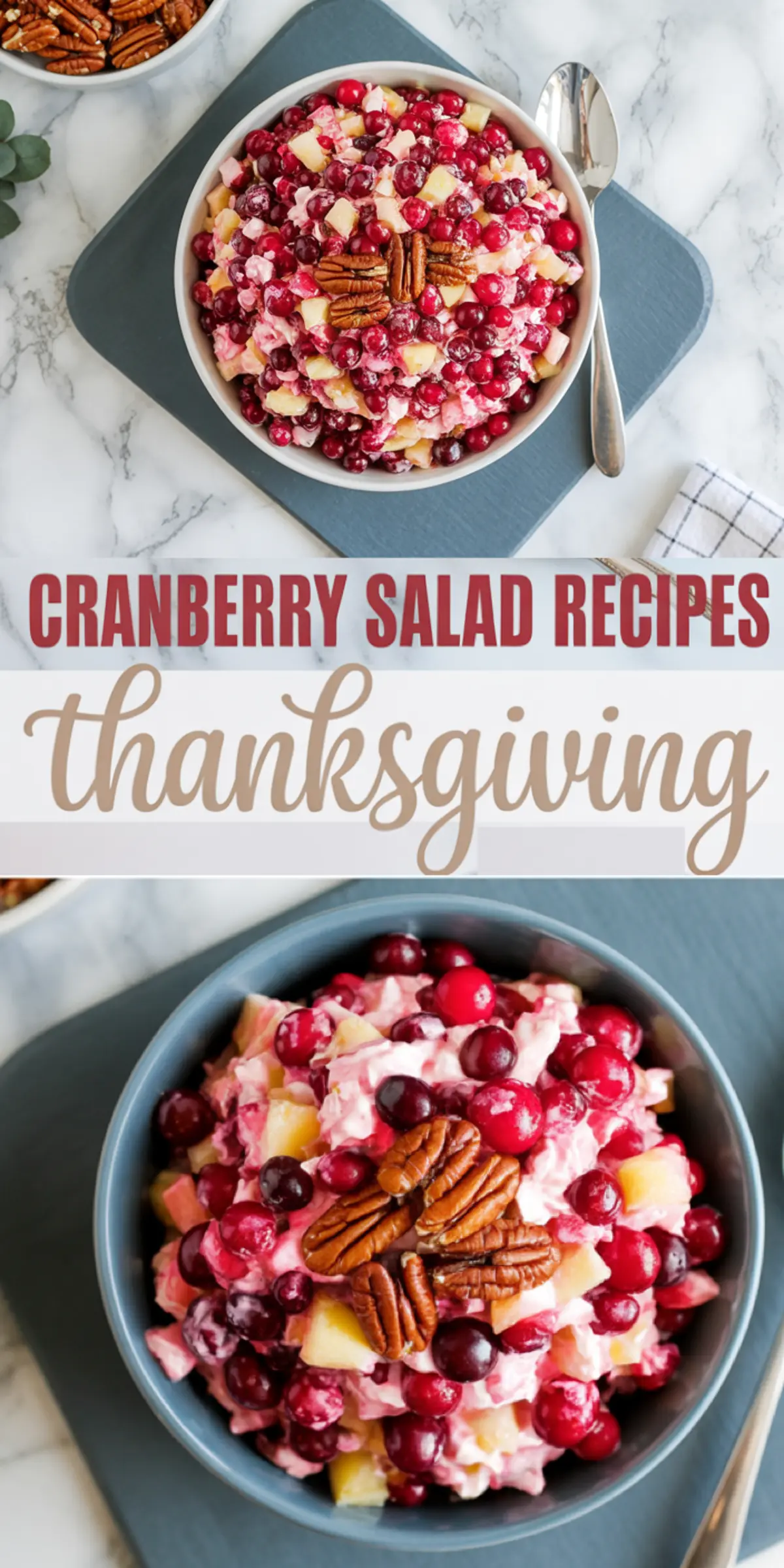 A bright and creamy cranberry salad brings color and balance to the Thanksgiving table. Fresh cranberries mix with pineapple, grapes, marshmallows, and pecans for a sweet and tangy dish that pairs beautifully with traditional holiday favorites. The smooth whipped topping ties everything together, making it a crowd-pleaser at family gatherings.